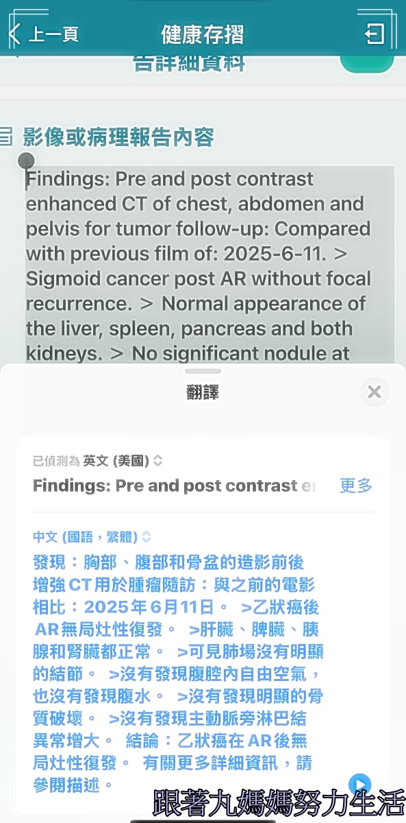 可是當我雙手不自覺地顫抖著,看著翻譯上面寫說「沒有其他發現」,眼淚在眼眶打轉時