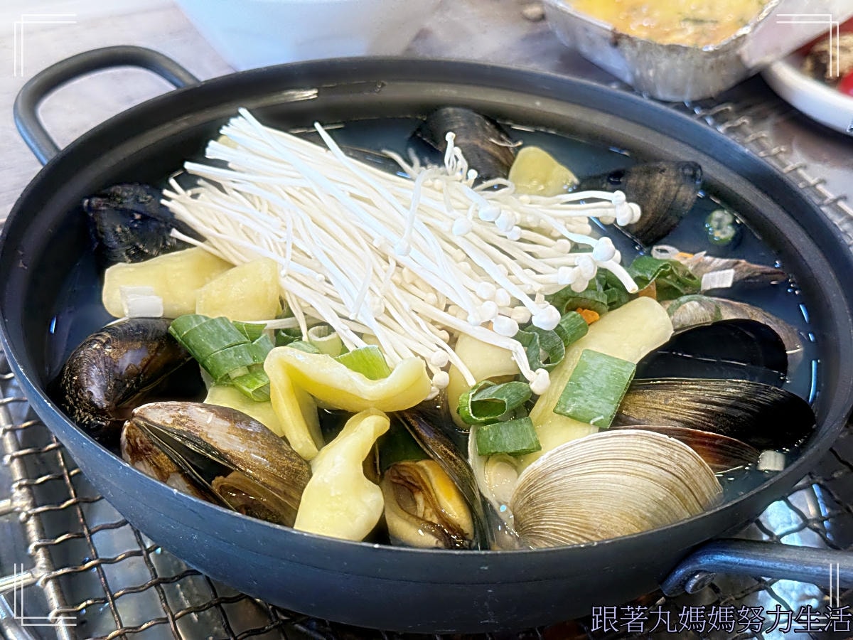鍋裡黃黃的很像蘿蔔乾(原諒我這麼形容,我第一眼看到真心覺得怎麼會在海鮮湯裡放醃蘿蔔),其實是麵疙瘩唷