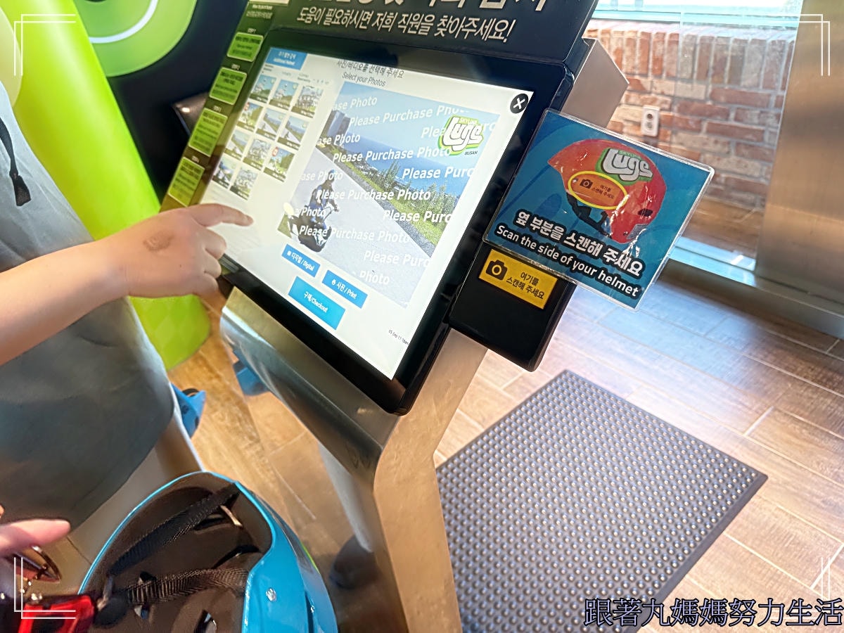 安全帽上會有一個QR code,結束的時候在機器旁邊掃描一下,就會顯示出你的照片