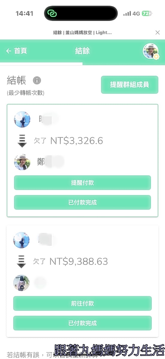 ✔️可以同時創建很多群組,跟各種不同的人分帳